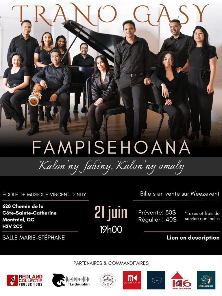 Nous sommes ravis de vous annoncer que le concert de Trano Gasy : Kalon’ny fahiny & Kalon’ny omaly aura lieu le 21 Juin 2025 à 19h dans la prestigieuse salle Marie-Stéphane (Vincent d’Indy) à Montréal.